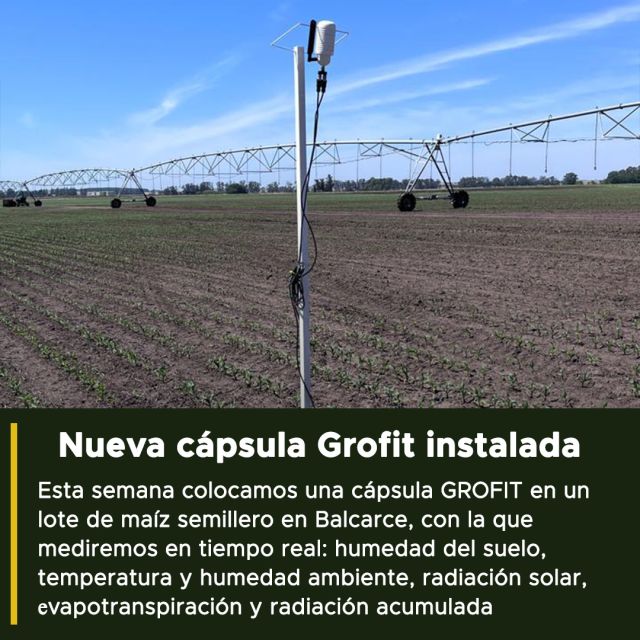 En Formagro seguimos incorporando tecnologÃa para generar información precisa que permita producir de manera más eficiente, rentable y sustentable. Esta semana instalamos una nueva cápsula GROFIT en un lote de maÃz para semillero en Balcarce, un cultivo donde el manejo del agua es clave para garantizar calidad y rendimiento.